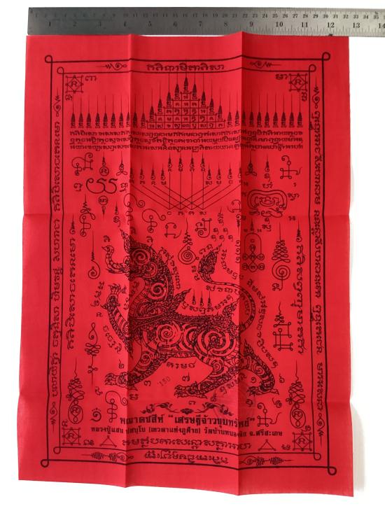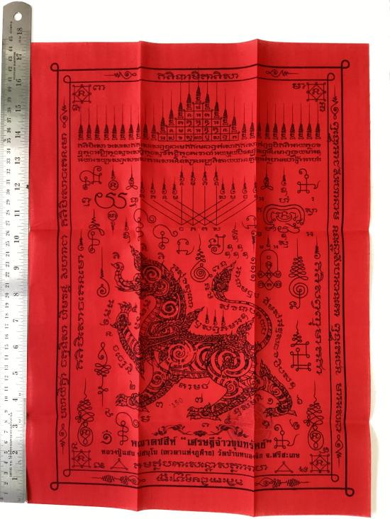 เคาะเดียวแดง 100 ผ้ายันต์ คชสีห์ รุ่น เศรษฐีจ้าวขุมทรัพย์ หลวงปู่แสน วัดบ้านหนองจิก จ.ศรีสะเกษ ขนาดA3 ( 11.5นิ้ว x 16.5นิ้ว )