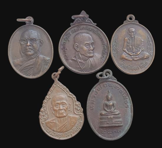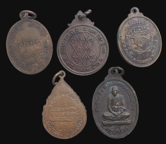 พร้อมกันทีเดียว 5 เหรียญครับ เหรียญครูบาแก้ว วัดดอยโมคคลาน + เหรียญครูบาราศรี ตุ๊เจ้าเสือดาว + เหรียญครูบากันทา วัดวังจำปา+เหรียญ ครูบา อิน อินโท