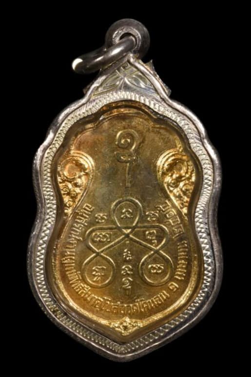 หลังยันต์ห้านิยม เนื้อทองแดงกะไหล่ทองลงยา