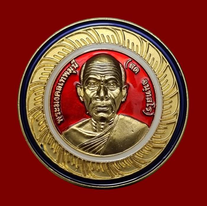 เหรียญเข็มกลัด หลวงพ่อสด วัดปากน้ำ กะไหล่ทองพ่นทราย ลงยา 3 สี กฐินพระราชทาน ปี 2558 สภาพสวยมากๆ
