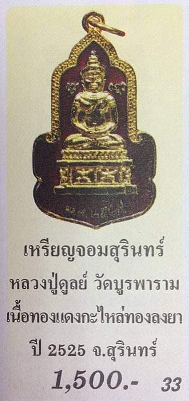 เหรียญ จอมสุรินทร์ ทองแดงกะหลั่ยทอง ลงยาสีแดง " หลวงปู่ดุลย์ วัดบูรพาราม " จ.สุรินทร์ ปี 2525 สวยมาก หายากมากด้วยครับ