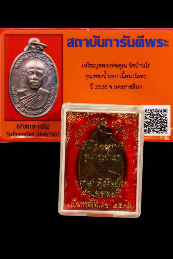 เหรียญหลวงพ่อคูณ วัดบ้านไร่ รุ่นเพชรน้ำเอก เนื้อนวะโลหะ ปี2536 พร้อมกล่องเดิม
