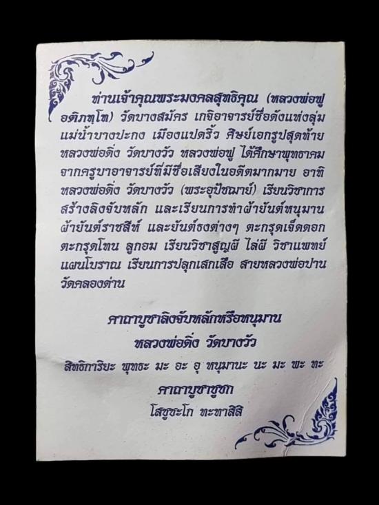 รูปหล่อลอยองค์ชูชก รุ่นไหว้ครู ปี 2553 หลวงปู่ฟู วัดบางสมัคร จ.ฉะเชิงเทรา ศิษย์เอกองค์สุดท้าย ของหลวงพ่อดิ่ง วัดบางวัว เนื้อทองแดงเถื่อน โค๊ตเลเซอร์ รันหมายเลข พร้อมกระดาษ คาถาบูชาผ่านการปลุกเสก
