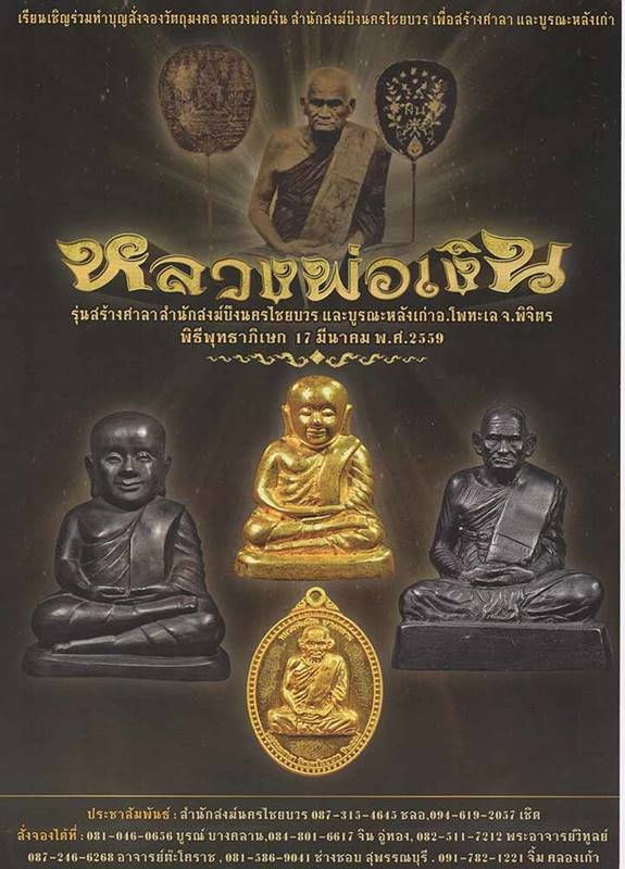 รูปหล่อหลวงพ่อเงิน วัดบางคลาน รุ่นสร้างศาลาสำนักสงฆ์บึงนครไชยบวร เนื้อนวโลหะ ปี 2559 พิธีดี เจตนาสร้างดี พิธีพุทธาภิเษก หลายพิธี ได้แก่ ที่วัดบางคลาน วัดคลองคูณ วัดทุ่งน้อย และวัดในจังหวัดพิษณุโลก โดยเกจิดังสายหลวงพ่อเงินหลายรูป เช่น หลวงพ่อหวั่น วัดคลองคูณ หลวงพ่อนงค์วัดทุ่งน้อย ฯลฯ