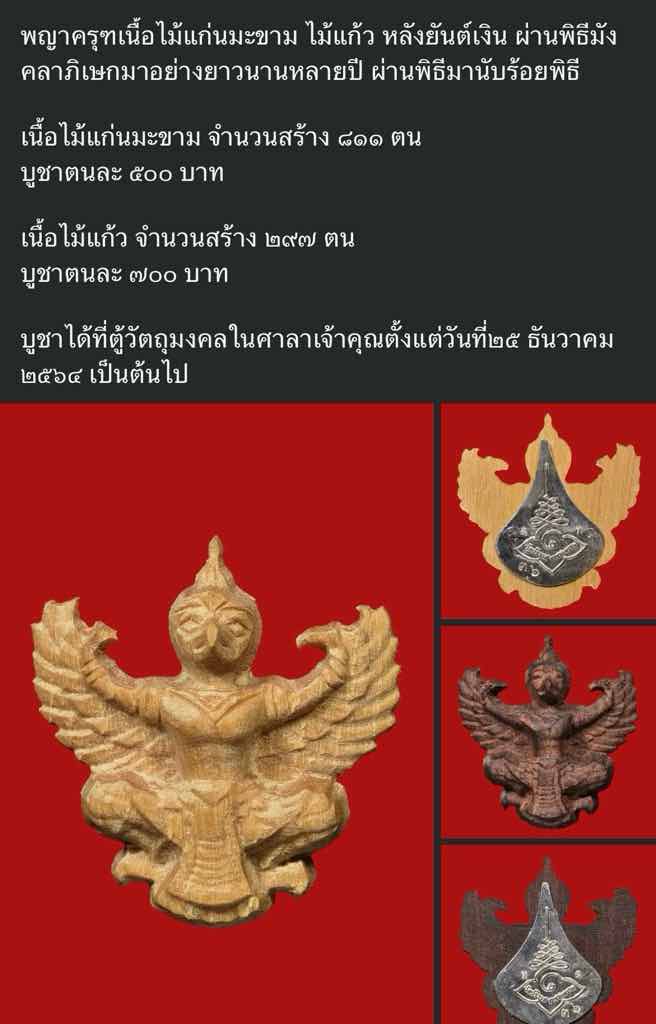 องค์พญาครุฑ เนื้อไม้แก้วป่า หลังยันต์เงิน 1 ใน 297 ตน หลวงพ่อสมชาย วัดปริวาส วัตถุมงคลรุ่นนี้สร้างไว้นานแล้ว ผ่านพิธีมังคลาภิเษกมาอย่างยาวนานหลายปี ผ่านพิธีมานับร้อยพิธี ทางวัดออกให้บูชา เมื่อปี 64