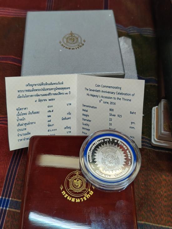 เหรียญกษาปณ์ที่ระลึกเฉลิมพระเกียรติพระบาทสมเด็จพระเจ้าอยู่หัว&ฉลองสิริราชสมบัติครบ 70 ปี800 บาทเนื้อเงิน