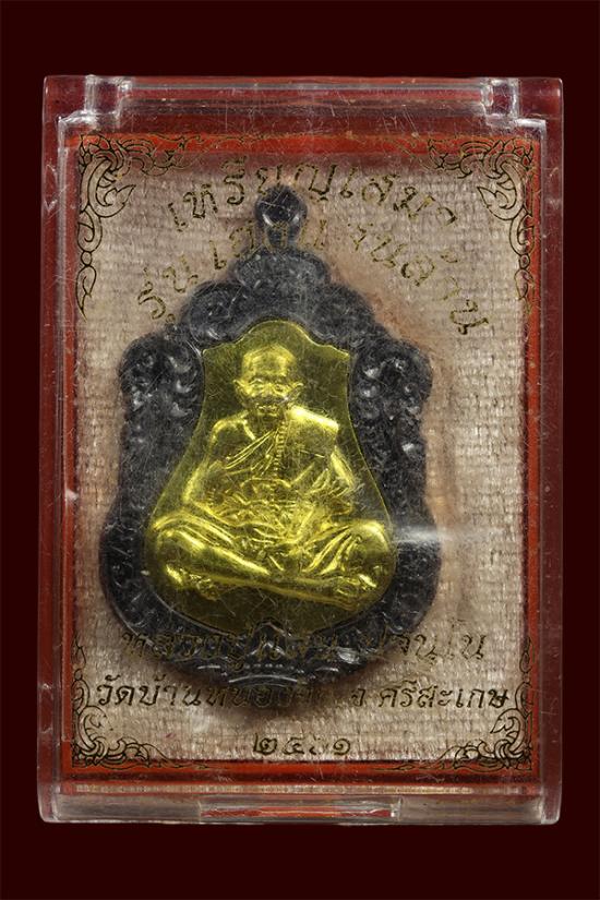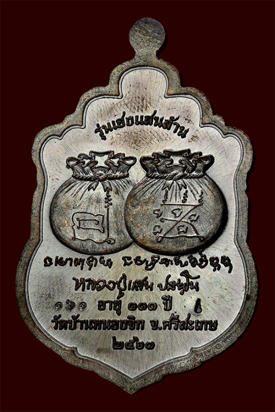 วัดใจเคาะเดียวแดง เหรียญเสมา รุ่นเฮงแสนล้าน หลวงปู่แสน วัดบ้านหนองจิก จ.ศรีสะเกษ ปี 2561 เนื้อทองแดงรมดำหน้ากากทอง สวยๆตามภาพกล่องครบ |
