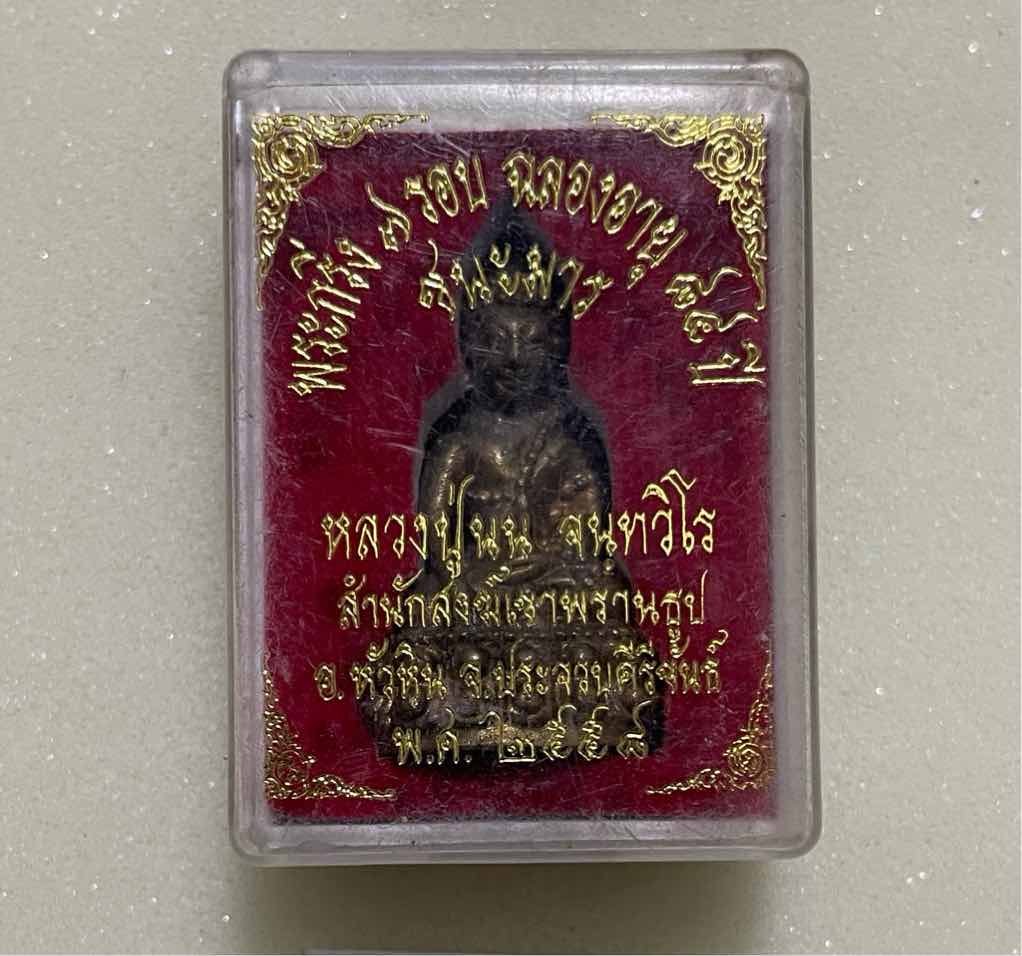 200.- ems พระกริ่ง ๗ รอบ ชนะมาร เนื้อทองระฆัง ปี 2558 หลวงปู่นนท์ วัดเขาพรานธูป จ.ประจวบคีรีขันธ์ (พระน้องชาย หลวงพ่อยิด วัดหนองจอก) No. 3462 สวยเดิม คากล่อง กริ่งดังดี
