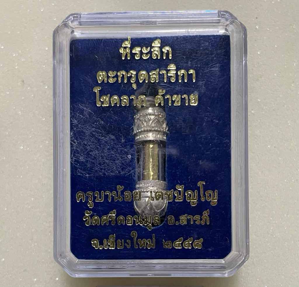 200.- ems ตะกรุดสาริกา โชคลาภ ค้าขาย #ตะกรุดจารมือ ครูบาน้อย วัดศรีดอนมูล อ.สารภี จ.เชียงใหม่ ปี 58 สวยสมบูรณ์ เดิมๆ คากล่อง