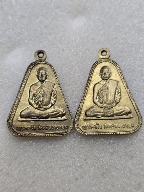 เคาะเดียวแดง เหรียญจอบหลวงพ่อเงิน วัดบางคลาน หลัง หลวงพ่อเงิน วัดดอนยายหอม 2เหรียญ