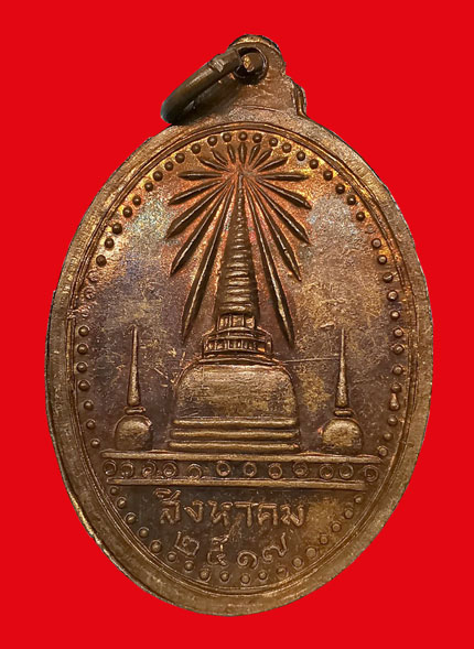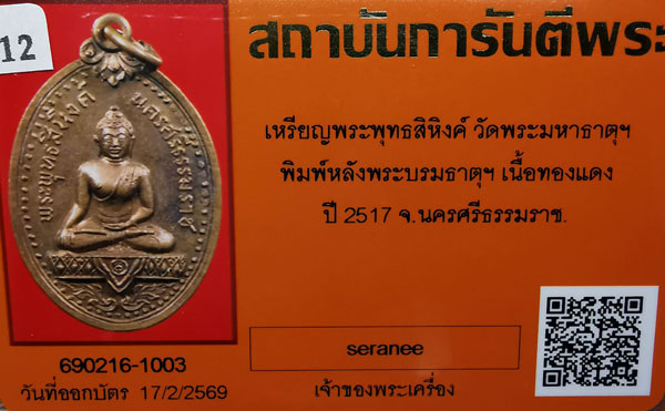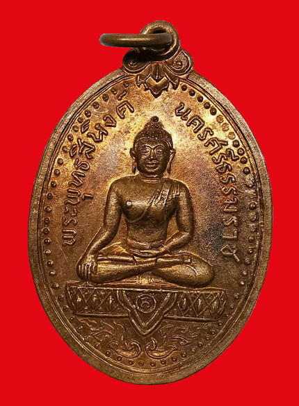 เหรียญพระพุทธสิหิงค์ วัดมหาธาตุฯ พิมพ์ใหญ่ เนื้อทองแดง ห่วงเดิม ปี2517 จ.นครศรีธรรมราช + บัตรG-pra สภาพสวยเดิมค่ะ
