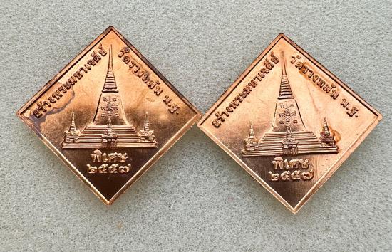 เหรียญข้าวหลามตัดหลวงปู่แผ้ว วัดรางหมัน ปี 57 ครบรอบอายุ 92 ปี เนื้อทองแดงผิวไฟ สภาพสวยตอกโค๊ตชัดเจน มีมา 2 เหรียญ |
