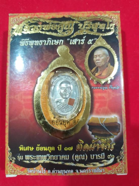 เหรียญย้อนยุค ปี 17 ติดผ้าจีวร หลวงพ่อคูณ วัดบ้านไร่ จ.นครราชสีมา ปี 2557