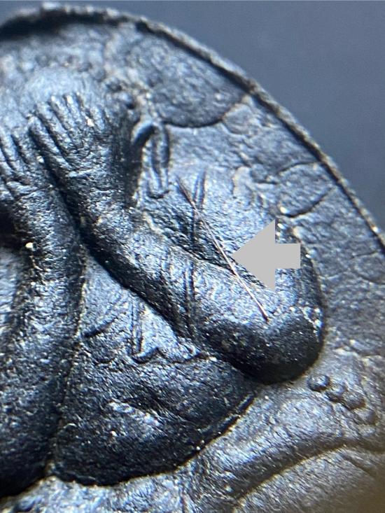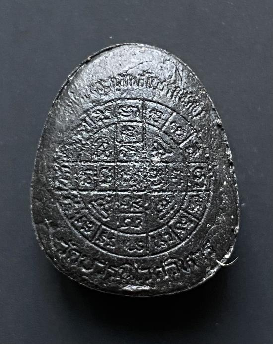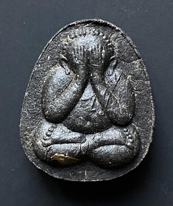 พระปิดตายันต์ดวงเล็ก ปี2523 สมเด็จพระญาณสังวร (เจริญ) วัดบวรนิเวศ_(เนื้อผงใบลานดำปลดหนี้)_มีเส้นเกศา_