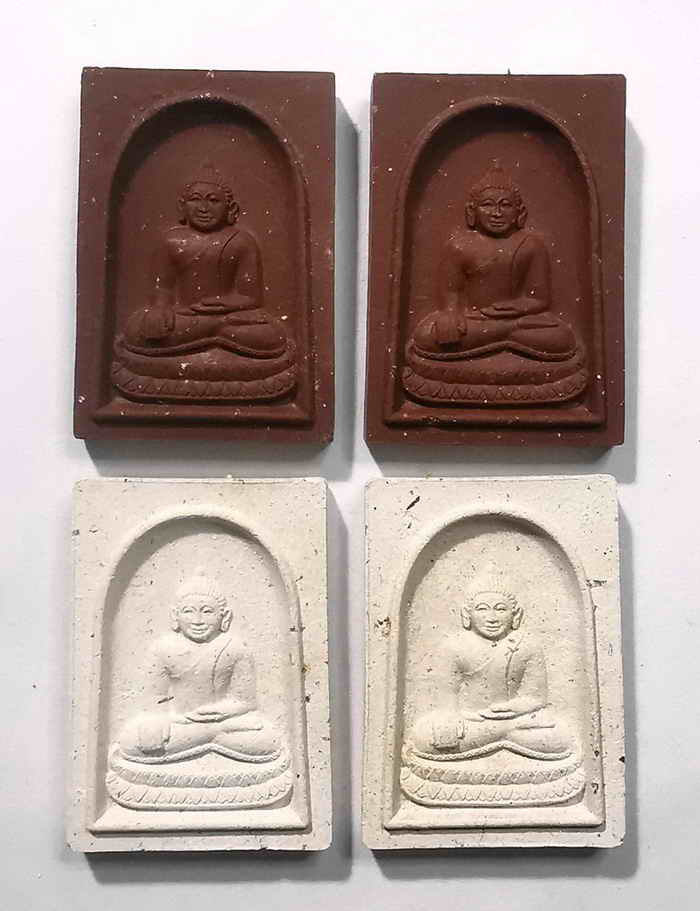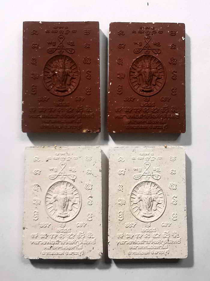 ( เคาะเดียว 4องค์ ) พระเนื้อผง หลังช้างสามเศียร หลวงพ่อสำเร็จศักดิ์สิทธิ์ หนองแค สระบุรี ปี2555