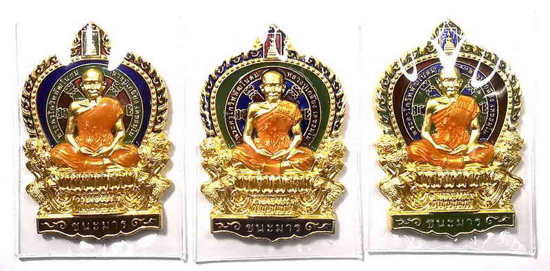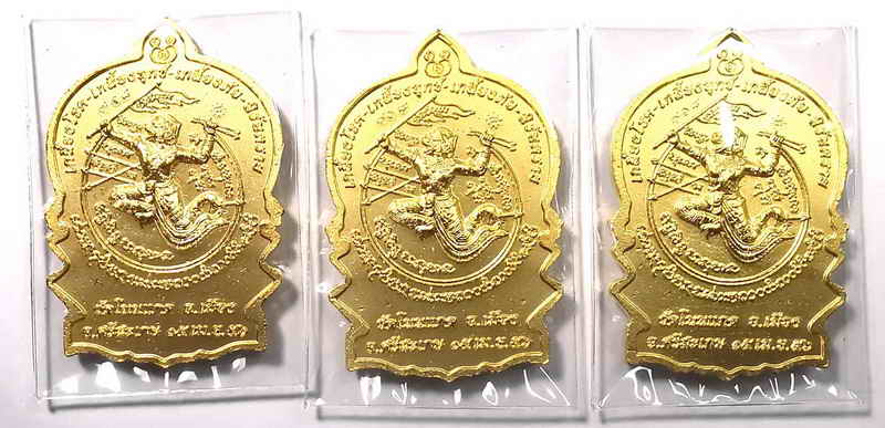 ( เคาะเดียว 1กล่อง 3องค์ ) เหรียญเสมานั่งพาน รุ่นชนะมาร หลังหนุมานเชิญธงชนะศึก เนื้อทองแดงกะหลั่ยทองลงยา ชุด 3 สี หลวงปู่เกลี้ยง วัดโนนแกด จ.ศรีสะเกษ พ.ศ.2556 สร้างเพียง 999ชุดเท่านั้น ตอกโค๊ตและหมายเ