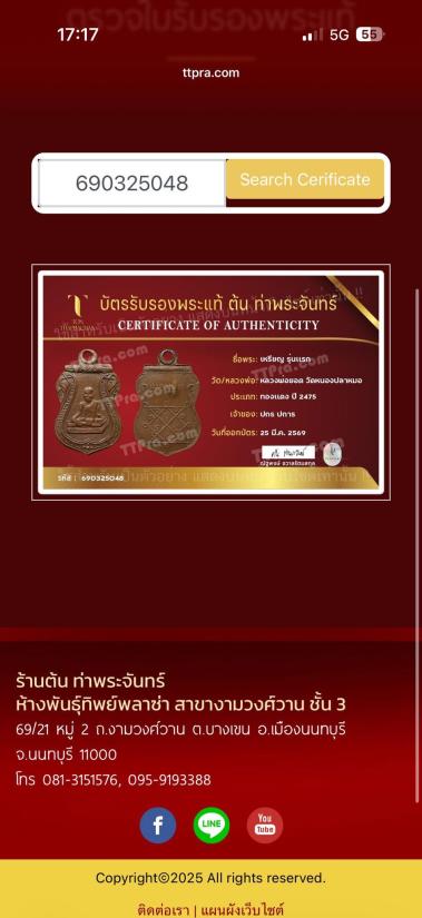รับประกันพระเเท้+บัตรรับรองพระเเท้ ต้น ท่าพระจันทร์