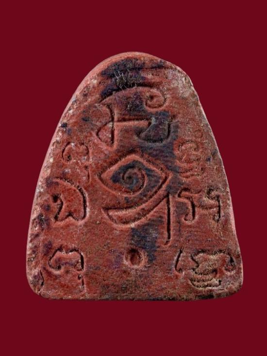 พระปิดตาวัดหนองกาน้ำ พิมพ์หลังยันต์แปดตัว (เนื้อผงแดง) ปี 2515