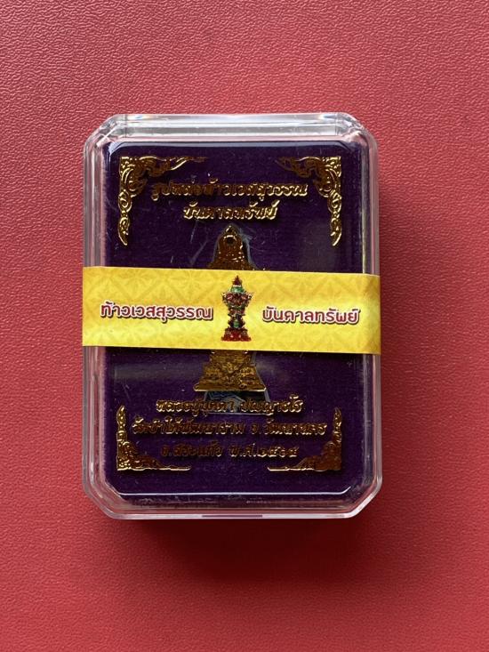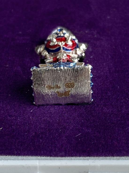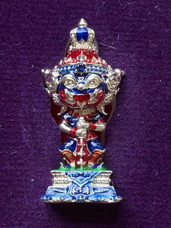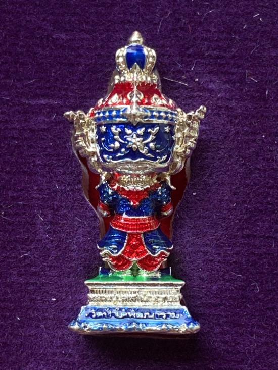 เคาะเดียวแดง หลวงปู่บุดดท้าวเวส รุ่น บันดาลทรัพย์ เนื้อ ชุบเงิน ลงยาน้ำเงิน ฝังพลอยน้ำเงิน