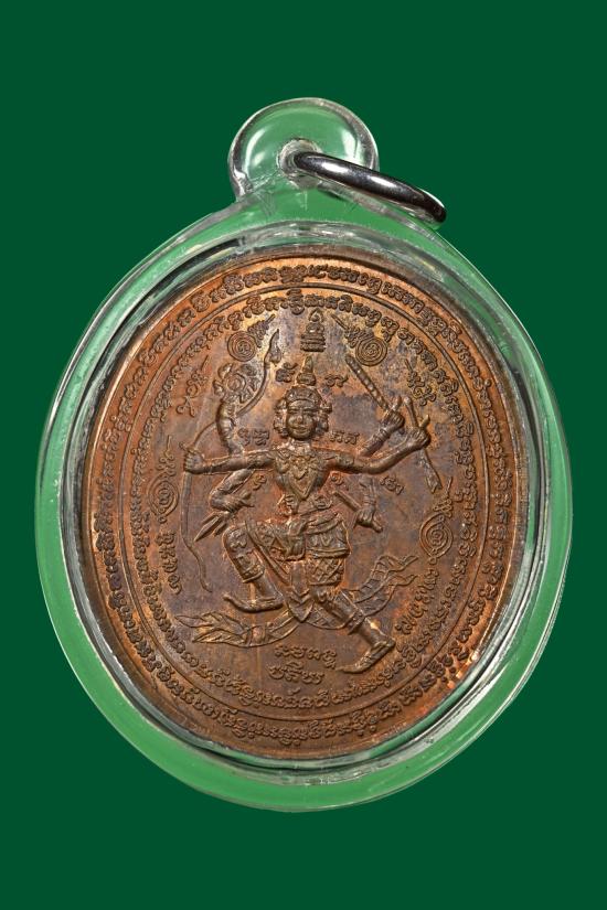 เหรียญนารายณ์หลังหนุมาน 10 กร รุ่นแรก เนื้อทองแดง พระอาจารย์ต๊ะ วัดช้าง อ.บ้านนา จ.นครนายก ปี39