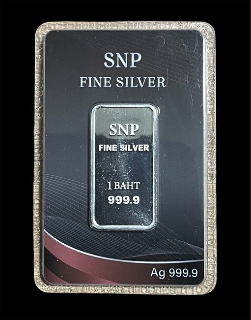 มาเริ่มที่ราคาเบาๆกัน ส่วนที่เหลือแล้วแต่ท่านครับ เงินแท่ง 1 บาท 999.9% ร้าน SNP พร้อมบัตรรับประกันจากร้านทองตัวแทนและซองแดงของร้าน