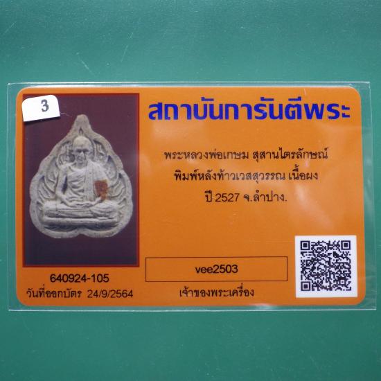 พระรูปเหมือน หลวงพ่อเกษม พิมพ์ใบโพธิ์ หลังท้าวเวสสุวรรณ 2527 ...ฺ3... (68.4.11