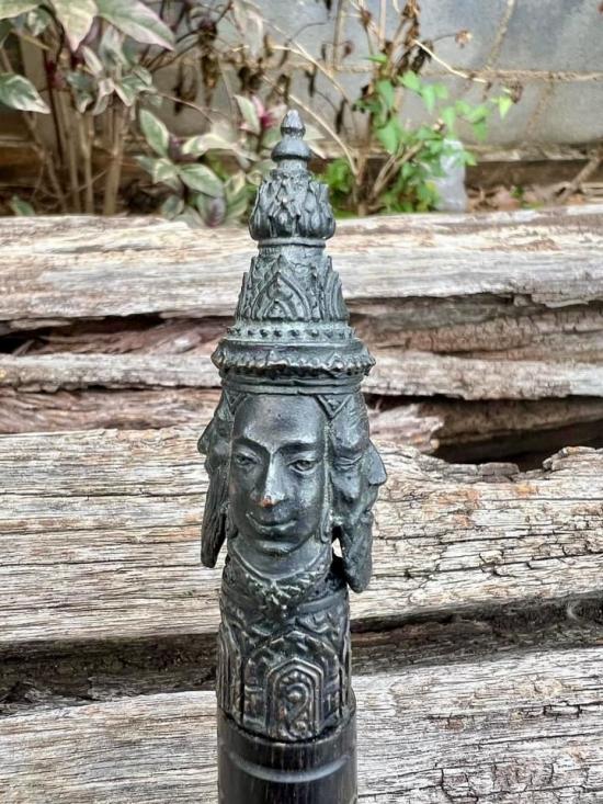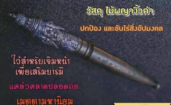 ไม้ครูหลวงพ่อรุ่ง นิมิต วัดท่าไม้ สมุทรสาคร"...ทำมาจากไม้พญางิ้วดำ(เป็นไม้ที่หายากมาก) ส่วนเศียรทำมากจากทองเหลือง พุทธคุณ บูชาเพื่อ ความร่มเย็นเป็นสุข กิจการรุ่งเรื่องราบรื่น เปรียบเสมือนมีครูบาอาจาร
