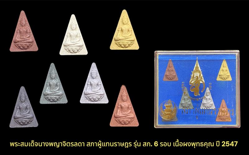 พระสมเด็จนางพญา สก. ชุดเนื้อผง 7 สี เฉลิมพระชนมพรรษา 6 รอบ ส ภาผู้แทนราษฎร ปี 2547 เคาะเดียว