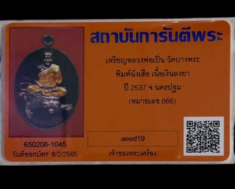 เหรียญเอกลักษณ์นั่งเสือ หลังหงส์คู่ หลวงพ่อเปิ่น วัดบางพระ ปี2537 เนื้อเงินลงยาสีแดง หมายเลข VIP 666 ตอกโค๊ต ตอกเลขชัดเจน หายากมาก 1 เดียวในเวป