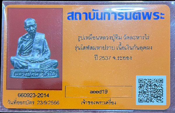 รูปเหมือนหลวงปู่ทิม โสฬสมหาปราบ เนื้อเงิน ปี 2537