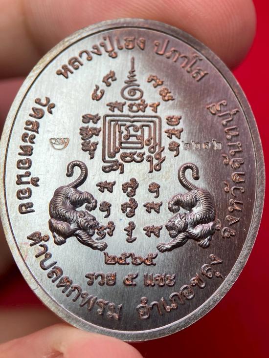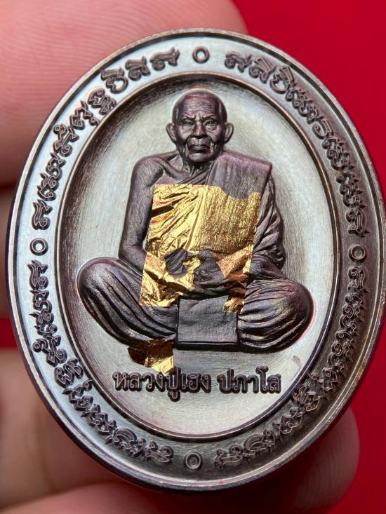 เหรียญ หลวงปู่เฮงปภาโส รุ่น รวย ๕ แชะ เลข2212 เนื้อทองแดงรมดำพิเศษเจอมทองพร้อมกล่องเดิม