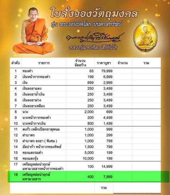 วัดใจ ยุคต้น2564 หลวงปู่มหาศิลา สิริจันโท(หลวงปู่ศิลา) เหรียญ พระเจ้าเปิดโลกบันดาลทรัพย์ รุ่นแรก เนื้อหล่อนำฤกษ์ที่วัด ชนวนมวลสารศักดิ์สิทธิ์ เลข367ราคาจอง 7,999 บาท กล่องเดิม