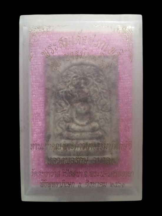 พระสมเด็จปรกโพธิ์ หลวงพ่อรักษ์ วัดสุทธาวาสวิปัสสนา จ.พระนครศรีอยุธยา รุ่น "บารมีร่มโพธิ์" ปี๒๕๖๑ เนื้อผงคลุกแร่อาถรรพ์โรยพลอย พร้อมกล่องเดิม รับประกันแท้และตามกฎ g-pra