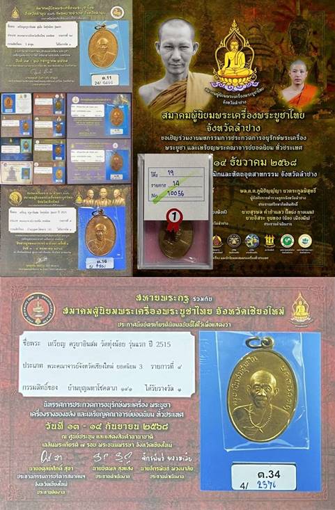 เหรียญครูบาอินสม วัดทุ่งน้อย รุ่นแรก ปี 2515 จำนวนการสร้าง 2515 เหรียญ