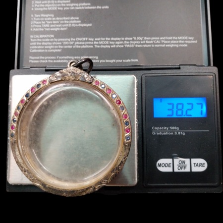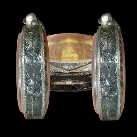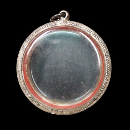 ตลับเงินแท้เก่า ฝั่งพลอย งานขึ้นมือยกซุ้มแกะลาย อย่างหนา ขนาดขอบกระจก 5.5 ซม. หนา 1 ซม.สภาพสวยสมบูรณ์