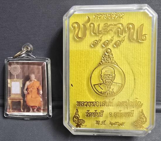 หลวงพ่อเสน่ห์ กตปุญโญ วัดพันสี อุทัยธานี (สร้างปี ๒๕๖๕) เหรียญ"ชนะจน๙๙๙"(ควายขวิด2)กล่องเหลืองซีลเดิม + รูปถ่าย หลังยันต์ เลี่ยมกันน้ำ เบาๆเคาะแรกแดง รับพระ 2 องค์ครับ