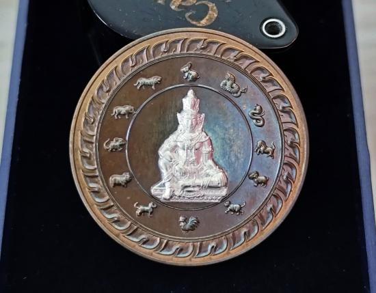เหรียญจตุคามรามเทพ รุ่นดวงดี159 เนื้อทองสัมฤทธิ์หน้ากากเงินหน้า-หลัง(มีแค่6เหรียญในรายการ) No.๒๘ พร้อมกล่องเดิม ขนาดเหรียญ 2.8 cm.