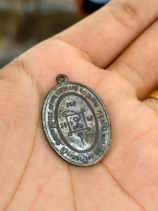 เหรียญคุกเข่า หลวงพ่อแดง วัดเขาบันไดอิฐ รุ่นสุดท้าย พิมพ์สองชายตรง ปี 2517 เนื้อทองแดง รมดำ