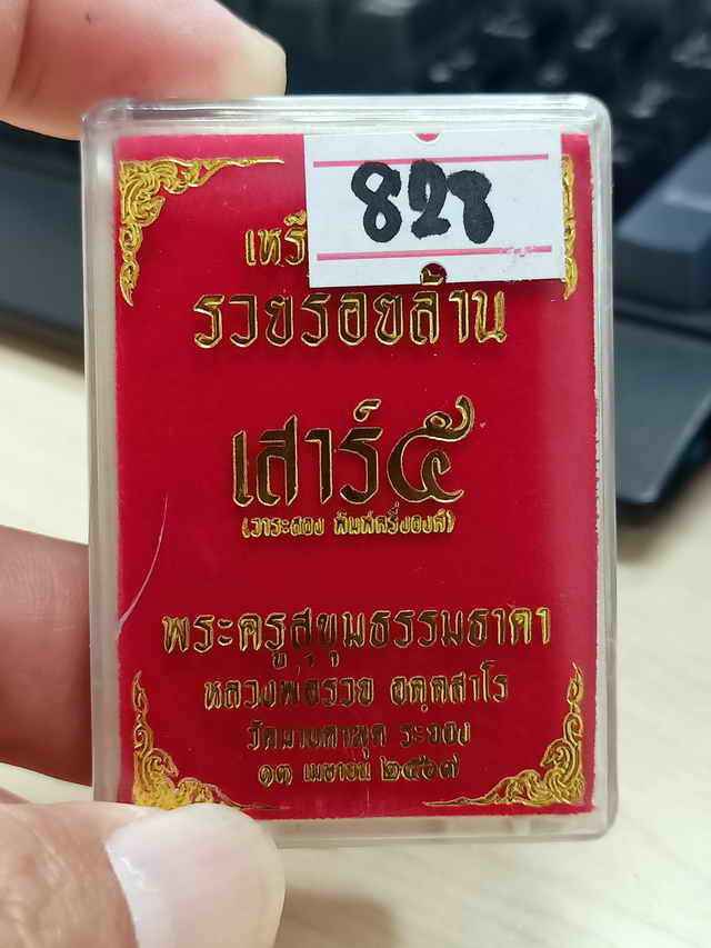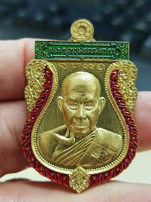 วัดใจ 100 เหรียญเสมา รวยร้อยล้าน หลวงพ่อรวย อคคฺสาโร วัดมาบตาพุด ระยอง ปี 2567 ทองทิพย์ ลงยาขอบ หมายเลข 828 กล่องเดิม