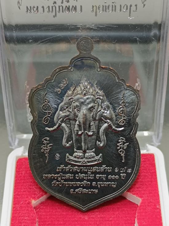 @@ เหรียญเสมา ช้างสามเศียรเอราวัณ รุ่น เจ้าสัวสยามแสนล้าน ปี 2560 หลวงปู่แสน ปสนฺโน วัดบ้านหนองจิก อ.ขุนหาญ จ.ศรีสะเกษ เนื้อทองแดงรมดำลงยา หน้ากากเงินเต็มแผ่น หมายเลข 172 พร้อมกล่องครับ