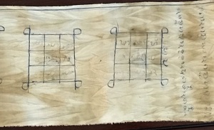 ผ้ายันต์เก่า สายล้านนา จารอักขระ ขนาดความยาว 30 กว่านิ้ว จารด้วยปากกายุคเก่า สภาพสวย สมบูรณ์ ..