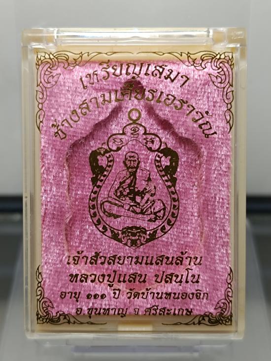 @@ เหรียญเสมา ช้างสามเศียรเอราวัณ รุ่น เจ้าสัวสยามแสนล้าน ปี 2560 หลวงปู่แสน ปสนฺโน วัดบ้านหนองจิก อ.ขุนหาญ จ.ศรีสะเกษ เนื้อทองแดงรมดำลงยา หน้ากากเงินเต็มแผ่น หมายเลข 79 พร้อมกล่องครับ