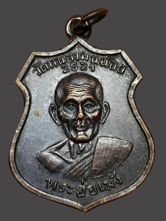 A8810.เหรียญพระฮ่อเม้ง หลังยันต์ ๕ วัดหนองมนน้อย เนื้อทองเเดงรมดำ เคาะเดียวเเดง