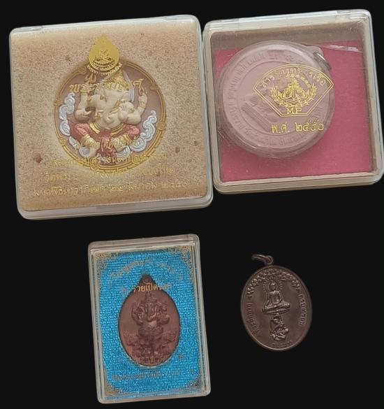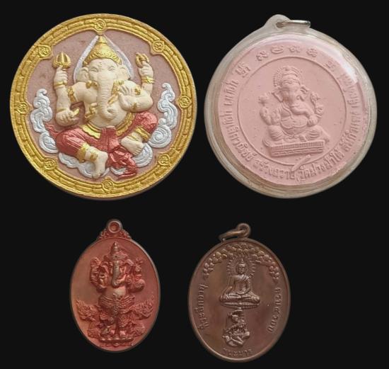 พร้อมกันทีเดียว 4 องค์ ครับ พระพิฆเนศ รุ่นขอได้ดังใจหวัง ปี 2550 วัดพระบาทบางแฟน จ.เชียงใหม่ สวยๆกล่องเดิมครับ + พระพิฆเนศสารวัตรทหารเรือ วัดม่วงม้าใต้ เชียงใหม่ คุณบุญมาสร้างถวาย สวยเดิมพร้อมเลี่ยม + เหรียญเคณศอินทร์ศวร รุ่น รวยเปิดโลก