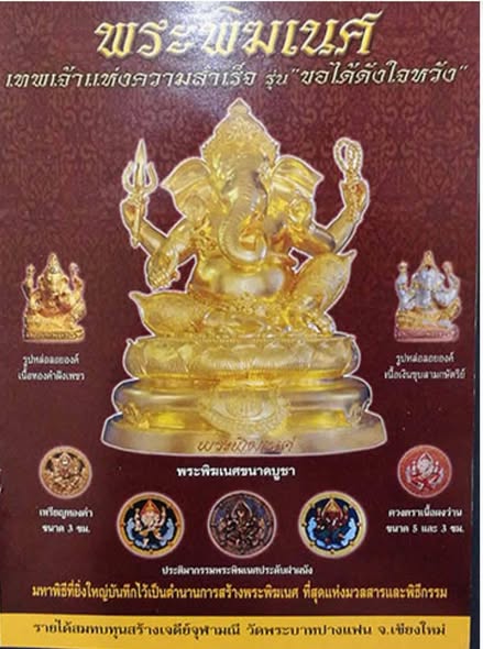 ชมรมพระพุทธรูปศักดิ์สิทธ์ องค์กรที่สืบสานงานด้านพุทธศาสนาและธำรงไว้ซึ่งศิลปวัฒนธรรมของชาติ ได้จัดสร้างเทวประติมากรรมพระพิฆเนศ รุ่นขอได้ดั่งใจหวัง เพื่อนำรายได้ส่วนหนึ่งสมทบทุนสร้างพระเจดีย์จุฬามณี วัดพระบาทปางแฟน อ.ดอยสะเก็ด จ. เชียงใหม่