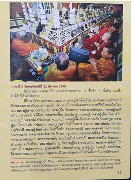 เวลา 13.09 น. พิธีเทวาภิเษก ณ พุทธสถานชมรมพระพุทธรูปศักดิ์สิทธิ์ โดยสมเด็จพระมหาธีราจารย์ วัดชนะสงคราม เป็นประธานจุดเทียนชัย และนั่งปรกพร้อมพระคณาจารย์ชื่อดังของเมืองไทย เช่น