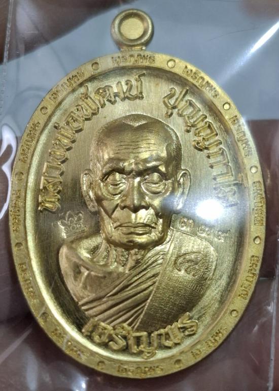 เหรียญเจริญล่าง 65 หลวงพ่อพัฒน์ ปุญฺญกาโม เนื้อทองฝาบาตร เลข ๓๗๙ สวยๆ พร้อมกล่องเดิม