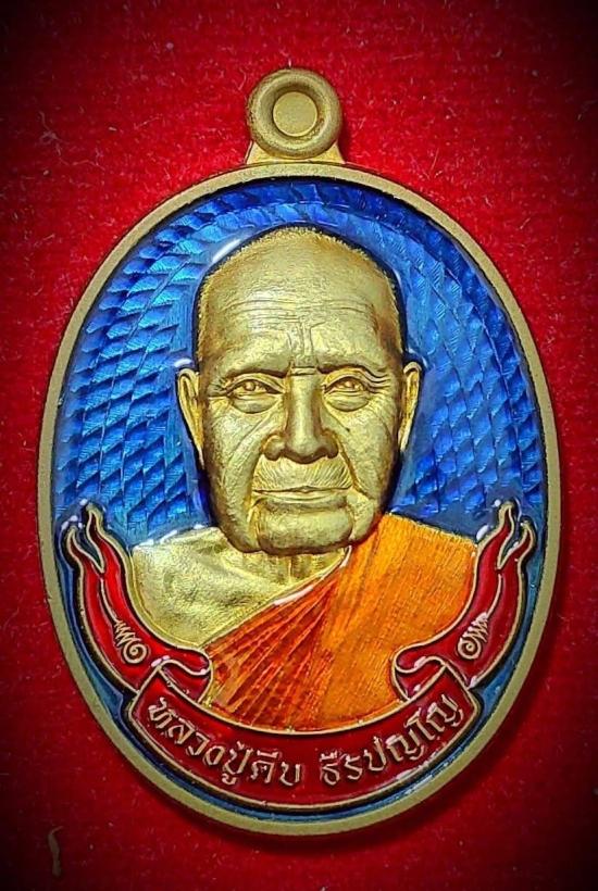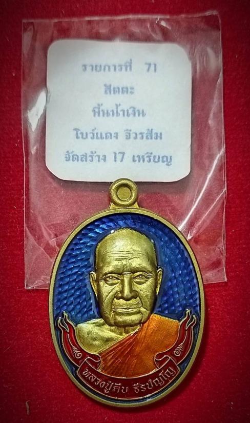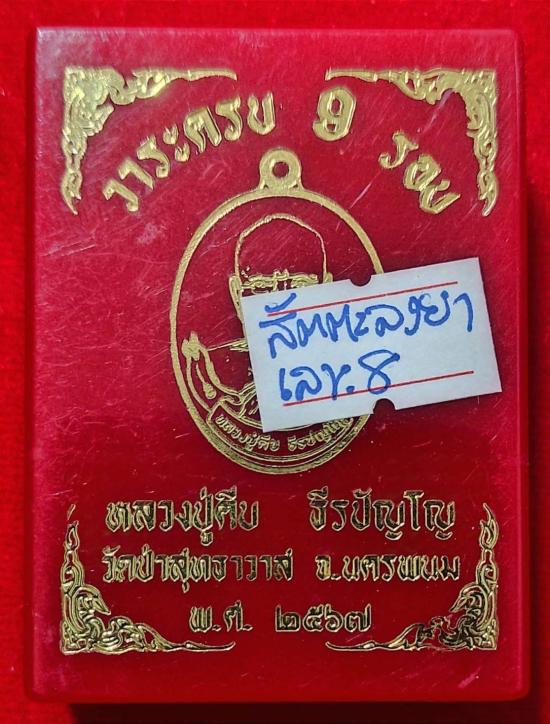 หลวงปู่คีบ ธีรปัญโญ วัดป่าสุทธราวาส จ.นครพนม วาระครบ 9 รอบ ปี 2567 เนื้อสัตตะ พื้นน้ำเงิน-โบว์แดง-จีวรส้ม หมายเลข ๘ สร้าง 17 เหรียญ