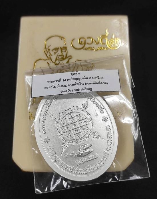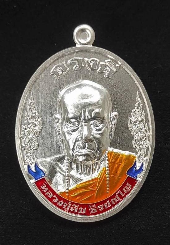เหรียญดวงดี หลวงปู่คีบ ธีรปัญโญ วัดป่าสุทธราวาส จ.นครพนม ปี 2567 เนื้อชุบเงิน ลงยาจีวร ลงยาโบว์แดง หลังยันต์ดวง หมายเลข ๕๕ สวยๆ