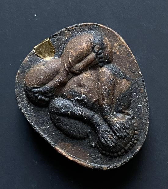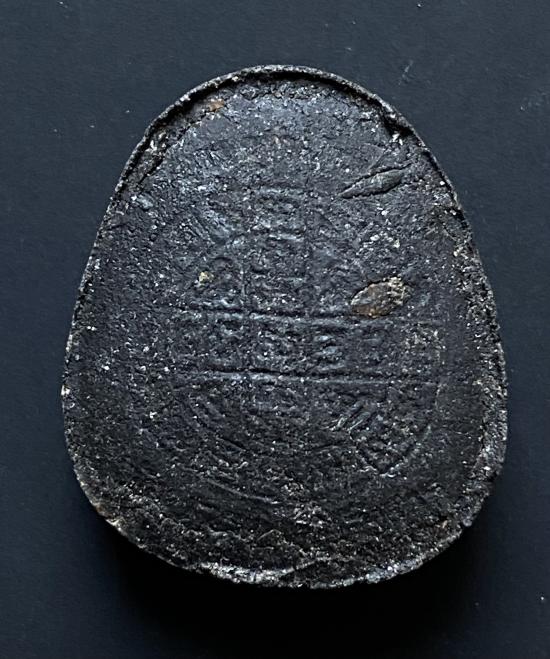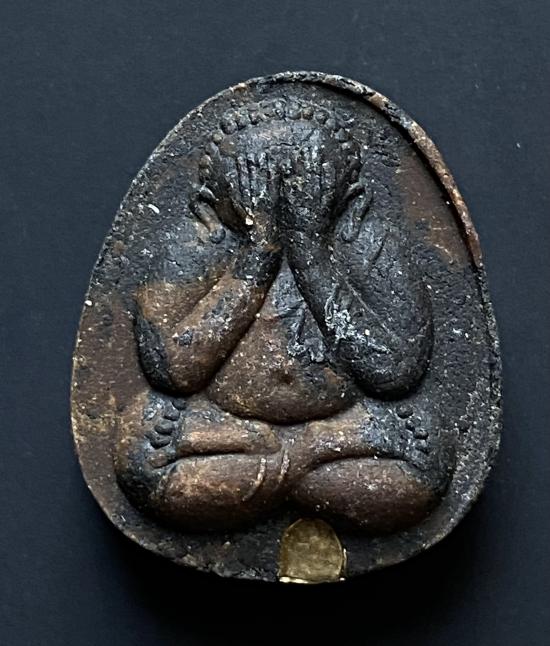 พระปิดตายันต์ดวงเล็ก ปี2523 สมเด็จพระญาณสังวร (เจริญ) วัดบวรนิเวศ_(เนื้อผสม_หน้าเกสร ๑๐๘ ชนิด+หลังใบลานดำ)_ตะกรุดเงิน_